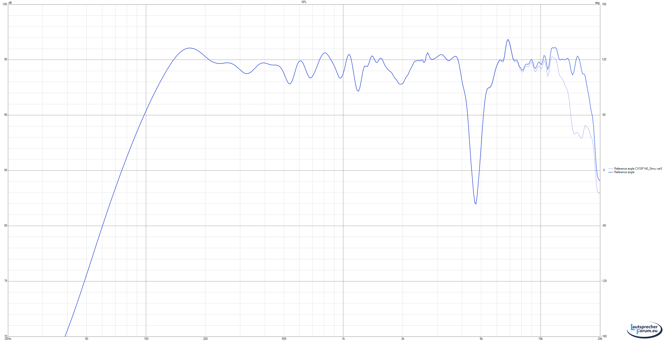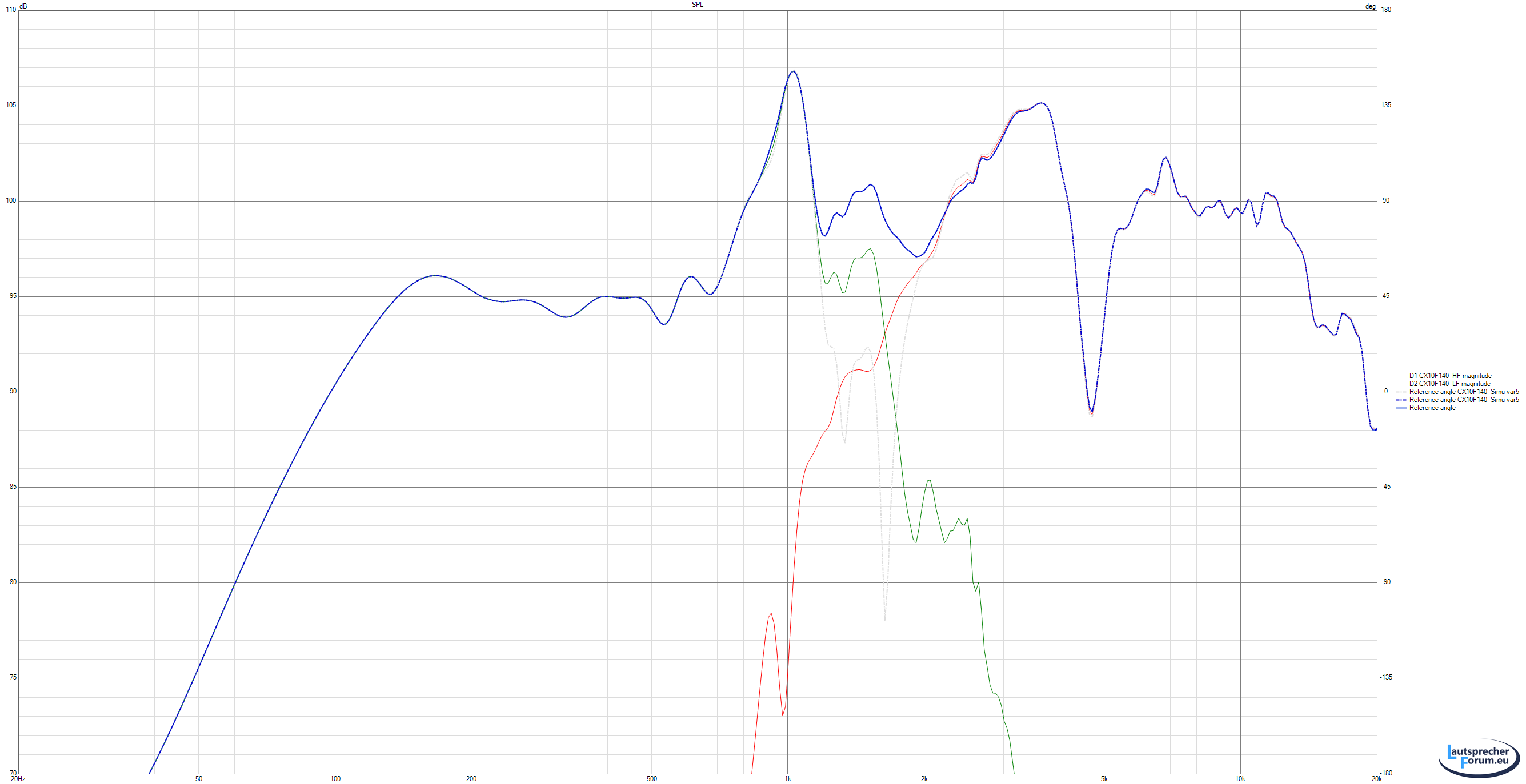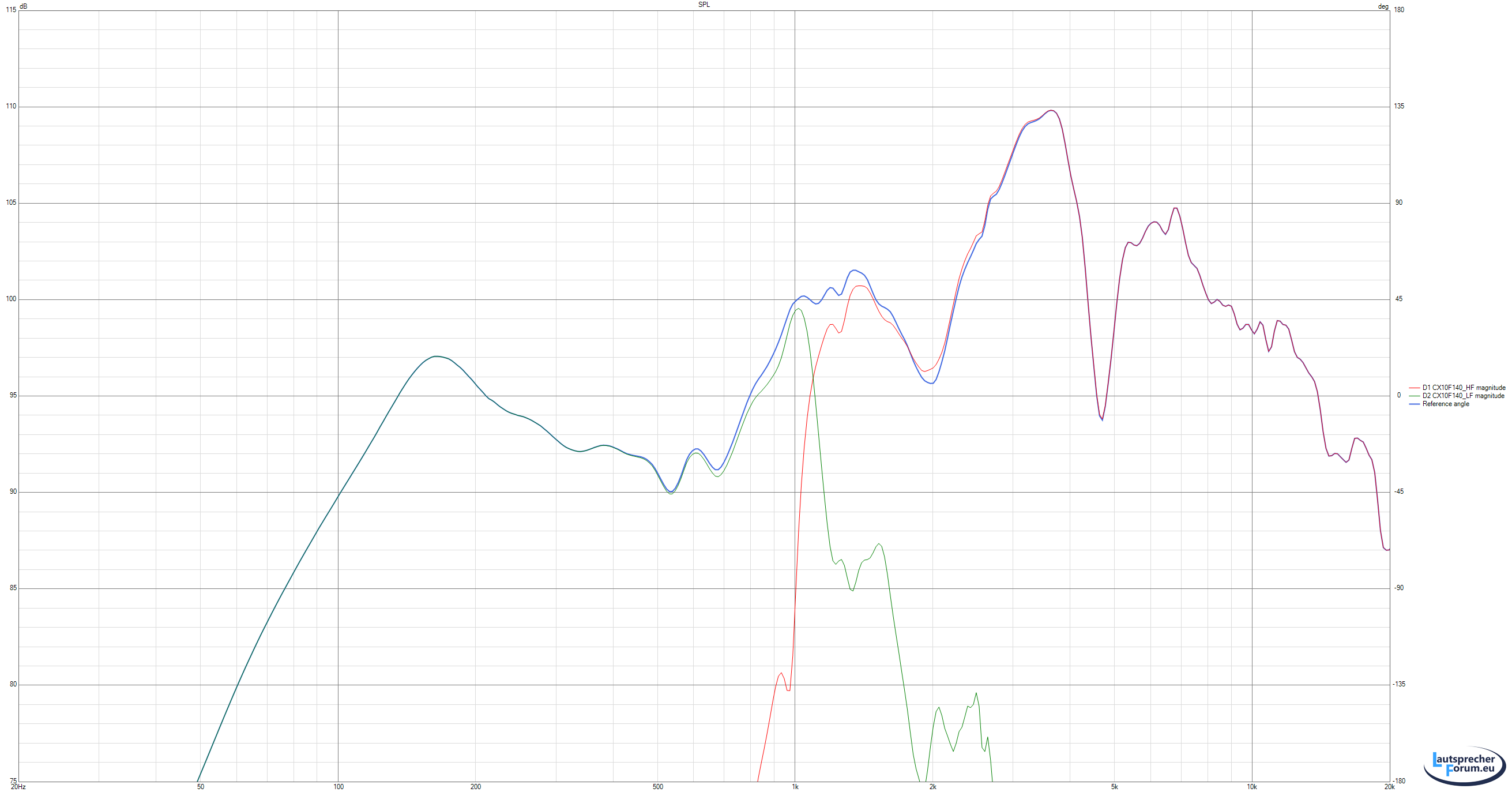 Der Hochtöner ist hier auch bei ca 1600Hz akustisch angekoppelt, fällt aber viel flacher ab,