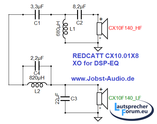 trennt viel zu tief mit 1,1 kHz, das dürfte der kleine Treiber nicht lange aushalten, zudem passt die Phase leider nicht.