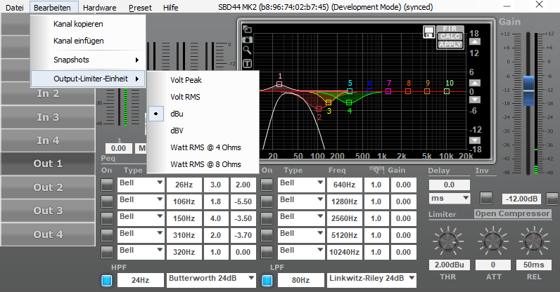 Spannend auch, dass bei Sinbosen davon die Rede ist, dass man die Thresholds von Limiter und Kompressor bis +24 dBu einstellen kann. Vielleicht hat man die Option erst, wenn man im Controller das Endstufen-Gain wie du erwähnt hast, korrekt einstellt?