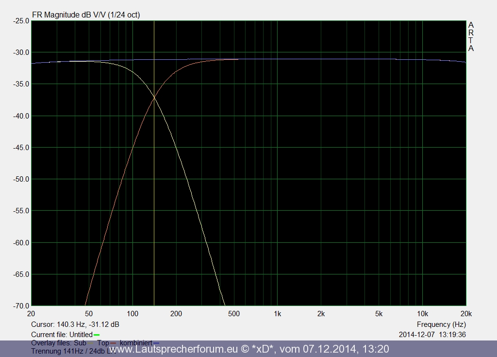 Ja natürlich haben Bass und Topteil keinen wirklich ähnlichen Frequenzgang. Bei der von mir genannten Funktion von ARTA ist das auch nicht so wichtig da mit dem Referenzsignal verglichen wird.*xD* hat geschrieben: Richtig, aber nachdem ein Bass prinzipbedingt ein Tiefpassverhalten hat und die Filter ja auch das ganze beeinflussen...?