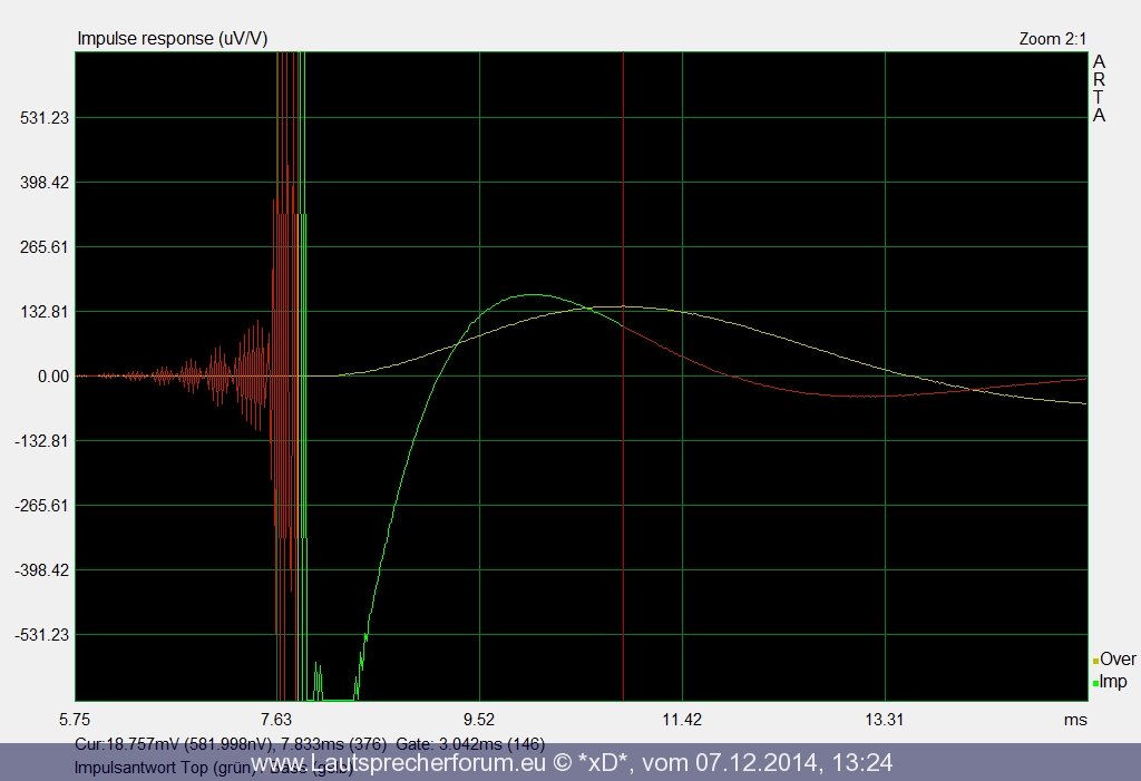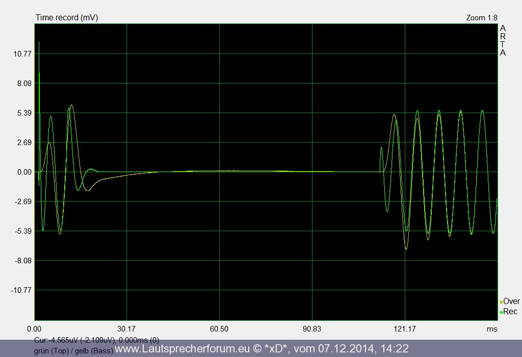 Das Topteil z.B. schwingt sich schneller ein aber dafür recht lang aus, während der Bass sich langsam einschwingt und auch überschwingt, aber dafür schnell ausschwingt.
