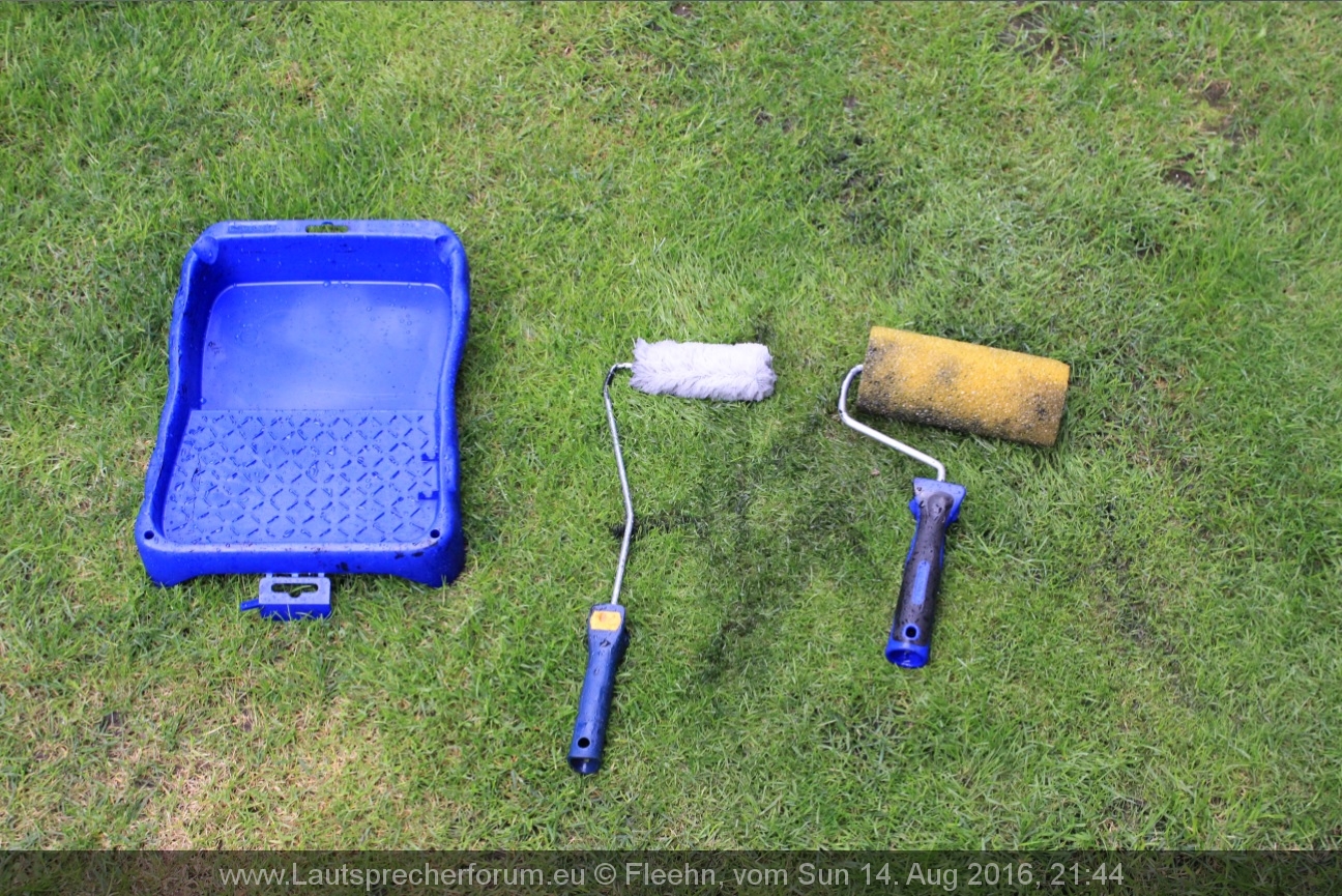 Hier genau das selbe Spiel wie mit der Normalen Rolle, kein verdünnen, gar nichts. Ordentlich Lack in den Behälter und den Lack ordentlich verteilen auf der Rolle.
