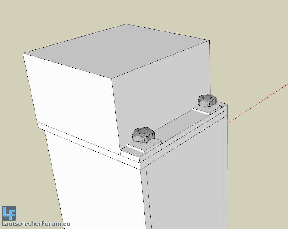 Habe mal ein paar Modelle bei SketchUp erstellt und bin bei diesem stehen geblieben. Ja, es ist nicht die schönste Lösung, jedoch wollte ich mit dieser Modularisierung relativ flexibel sein und auch einmal die andere Sat210v2 benutzen.