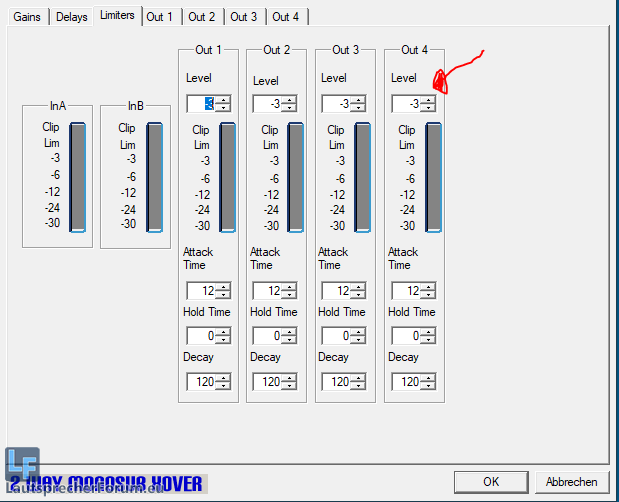Lt. Jobstis Limiterberechnung muss du -4,19dbu einstellen. Aber damit wäre ich wirklich sehr vorsichtig! Bei einem Chassis sind es sogar -5,28dbu!