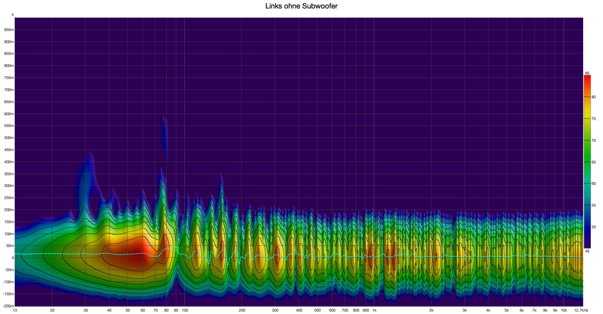 Was für mich jedoch modal aussieht, ist der Pegel auf dem linken Kanal ohne Subs im Bereich 40-80 Hz. Rechts fehlt im Vergleich dazu deutlich Energie.